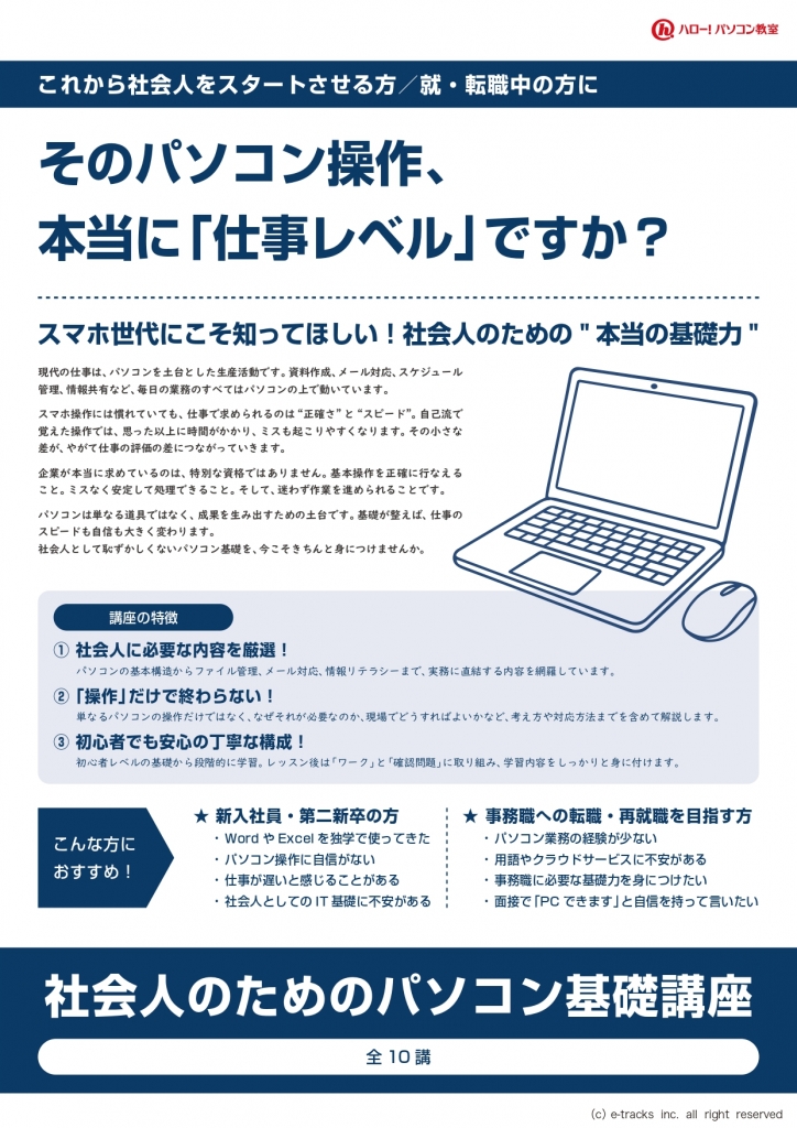 ハロー!パソコン教室ではパソコン基本講座から資格対策講座まで